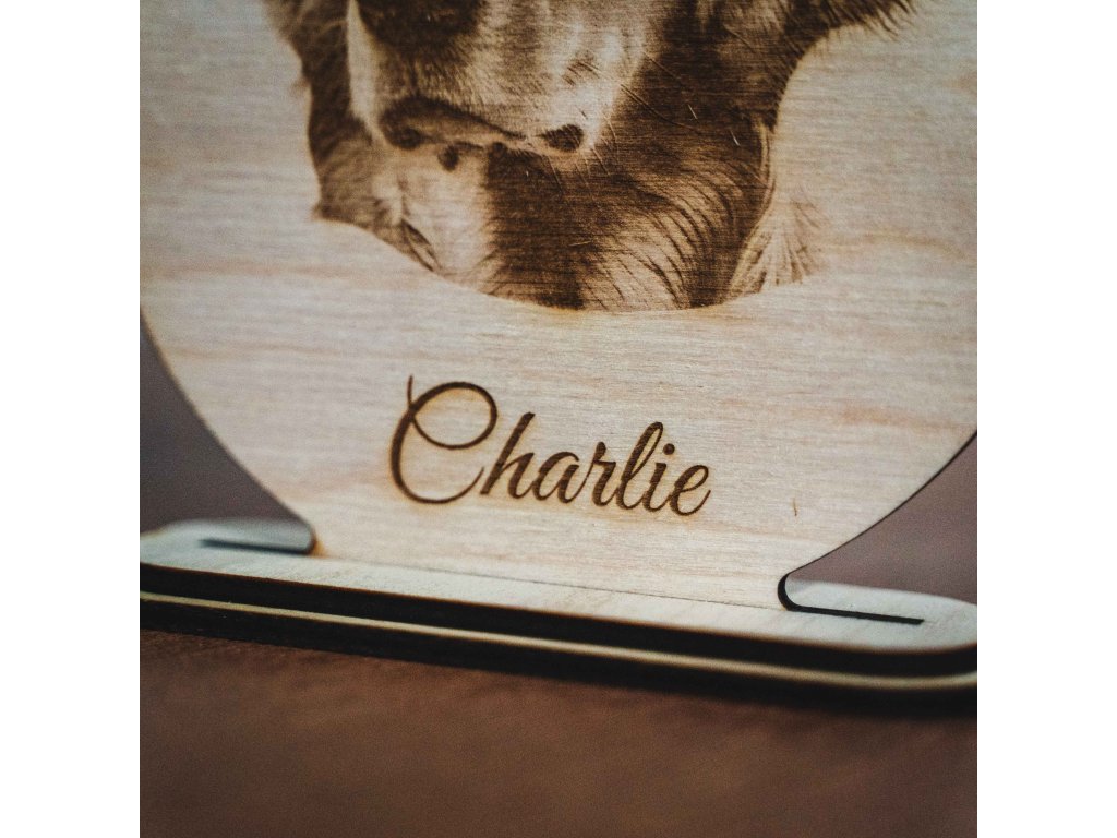 Personalizovaná fotografia na dreve s menom a podstavcom – spojenie prírodnej elegancie a vašich spomienok. Ideálny darček alebo štýlová dekorácia.